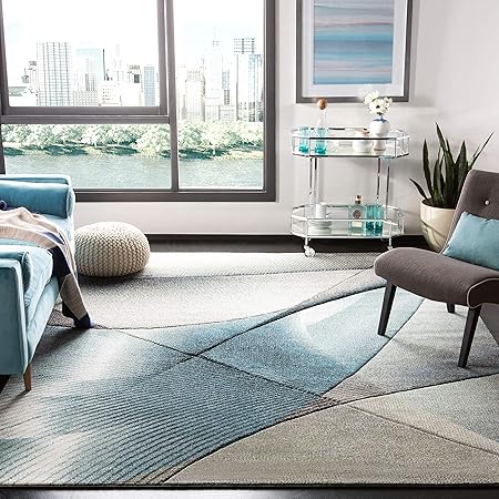 Amazon Com Safavieh Hollywood Collection Hlw715d Mid Century Modern Non Shedding Stain Resistant Living Room Bedroom Area Rug 8 X 10 Grey Teal Furniture Decor