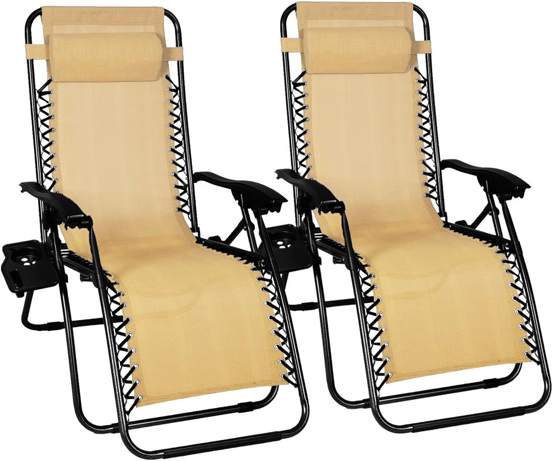 Timber Ridge FC-630-68080 Zero Gravity Locking Outdoor Patio Sun Lounger Recliner Lounge Chairs with Cupholders Gray 2 Pack Timber Ridge. Set of 2 Metal Blue Zero Gravity Chairs Patio Beach Camping Folding Recliner Chair with Cup Holder and Phone Holder. Black Folding Zero Gravity Chairs Metal Outdoor Lounge Chair in Green Seat with Headrest 2-Pack New.