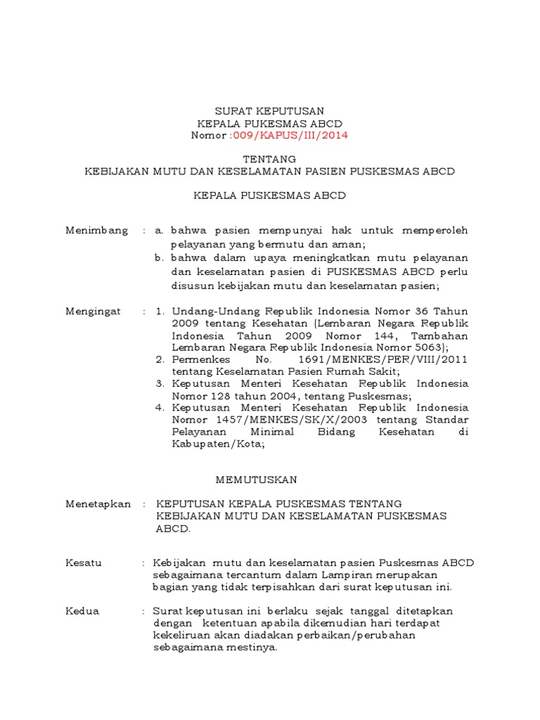 Berikut adalah contoh surat keputusan komite yang dapat digunakan sebagai referensi: