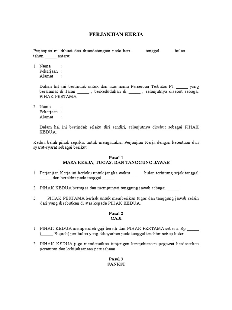 Surat perjanjian kontak kerja adalah dokumen legal yang berisi kesepakatan antara pekerja dan pemberi kerja. Dokumen ini dibuat untuk menetapkan hak dan kewajiban kedua belah pihak selama masa kontrak kerja berlangsung. Dalam tutorial ini, kami akan membahas cara membuat surat perjanjian kontak kerja dalam format PDF.